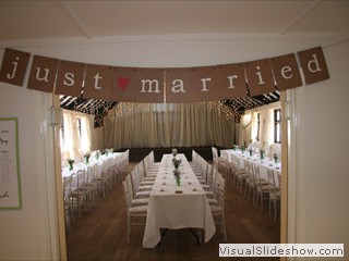 The Hall has a public entertainment license which permits music and dancing, but all entertainment must end by 11.00pm (Mon - Sat) and 10.30pm on a Sunday, the site must be cleared and empty by 11.30pm (Mon - Sat). The whole building is a NO Smoking area. There are plenty of tables and chairs to use with more than one event on the same day, but for exclusive use there is seating for approx 150 but with staging and tables 100 is more comfortable. The main hall has an audio system and noise limiter. Hirers can connect wirelessly by bluetooth, 3.5mm mini jack plug or XLR cable. There are hard wired microphones and wireless microphones available for use on application. The main hall also has a projector and screen which can be made available on application. Connections via HDMI or bluetooth plus connection to our audio speakers. For more information about using the Hall as a Wedding Reception Venue please click here Slideshow of recent Weddings in the Hall. The shared kitchen is included within the price. If alcoholic drinks are being sold on site then we have a prefered supplier who offers a mobile bar service based in Cambridge http://www.banquetinn.co.uk/ or a Temporary Event Notice under Licensing Act 2003 will need to be applied for, but only after approval by the Booking Secretary. Floor Plan - we hope the attached file will give some indication of the layout of the building for your planning purposes.