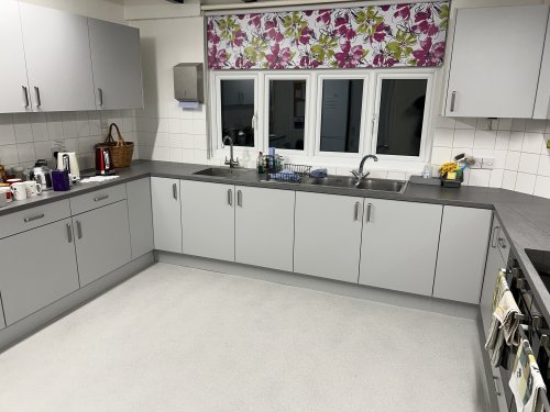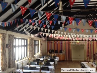 The Hall has a public entertainment license which permits music and dancing, but all entertainment must end by 11.00pm (Mon - Sat) and 10.30pm on a Sunday, the site must be cleared and empty by 11.30pm (Mon - Sat). The whole building is a NO Smoking area. There are plenty of tables and chairs to use with more than one event on the same day, but for exclusive use there is seating for approx 150 but with staging and tables 100 is more comfortable. The main hall has an audio system and noise limiter. Hirers can connect wirelessly by bluetooth, 3.5mm mini jack plug or XLR cable. There are hard wired microphones and wireless microphones available for use on application. The main hall also has a projector and screen which can be made available on application. Connections via HDMI or bluetooth plus connection to our audio speakers. For more information about using the Hall as a Wedding Reception Venue please click here Slideshow of recent Weddings in the Hall. The shared kitchen is included within the price. If alcoholic drinks are being sold on site then we have a prefered supplier who offers a mobile bar service based in Cambridge http://www.banquetinn.co.uk/ or a Temporary Event Notice under Licensing Act 2003 will need to be applied for, but only after approval by the Booking Secretary. Floor Plan - we hope the attached file will give some indication of the layout of the building for your planning purposes.